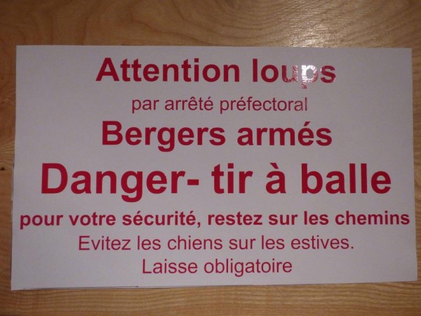 Le plus souvent, la présence de chiens de protection est annoncée par des panneaux dont « pratiquement aucun randonneurs ne tient compte ». Cet été (déjà mis en application dans certains lieux) les usagers de la montagne devront se méfier des tirs de défense comme l’indique ces panneaux.