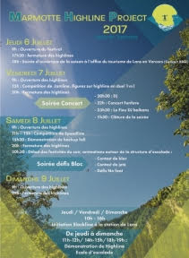 Le Marmotte Highline Project, l’un des premiers évènements du genre, retrouve cette année encore les falaises de Lans en Vercors du 6 au 9 juillet. Un événement créé et porté par « C’est Slacker bon », dynamique club de slackline et highline grenoblois. Quatre jours durant lesquels, plusieurs centaines departicipants pourront évoluer sur les différentes highlines du plateau des Ramées et des falaises environnantes. Situé au cœur du Parc Naturel Régional du Vercors, le site offre des conditions idéales à la pratique ainsi qu’un large panorama sur la forteresse calcaire du Vercors et les massifs environnants.