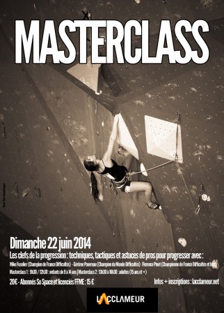 Le 22 juin, se déroulera à Niort sur le mur de l’Acclameur les Masterclass. Florence Pinet, Gérôme Pouvreau et Mike Fuselier viendront distiller techniques, tactiques et astuces de pro pour progresser en escalade et vous donner les clés de la progression grâce à des cours payants de 3 heures.