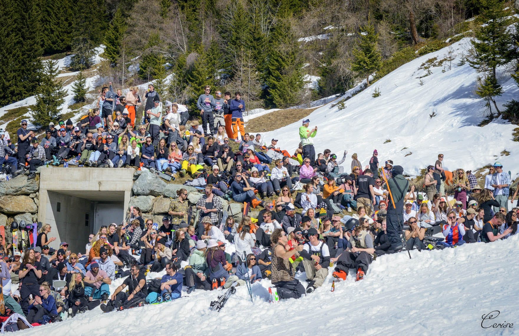Au fil du temps, l’événement a trouvé son lieu naturel à Verbier, où le terrain et la communauté correspondaient à son ADN libre d’esprit. Le parcours, traditionnellement construit autour du Bar 1936 et des Ruinettes, crée un amphithéâtre naturel où locaux, saisonniers et visiteurs bordent la piste avec des cloches, des bières et un enthousiasme sans filtre.