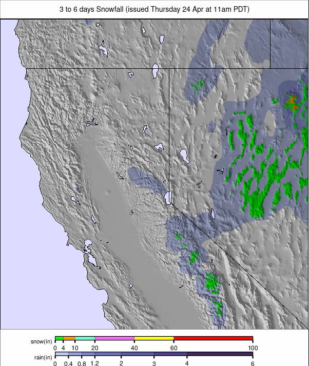 Surtout sec, avec des bas de nuit occasionnels en train de plonger de quelques degrés en dessous de congélation sur un terrain élevé, mais de rester au-dessus du gel même la nuit. Les sommets diurnes atteignent les années 50 et 60. Un temps plus instable au cours du week-end peut faire monter quelques flocons de neige, mais plus probablement la pluie et le grésil.