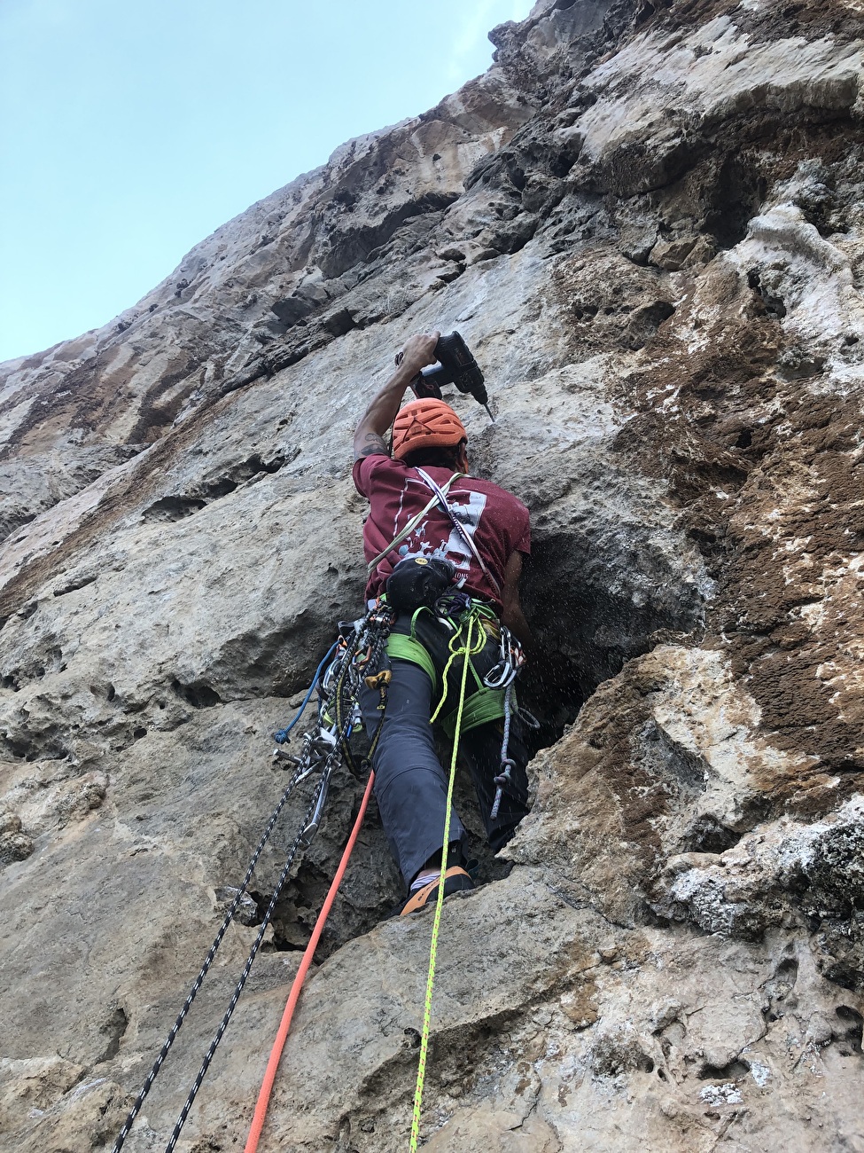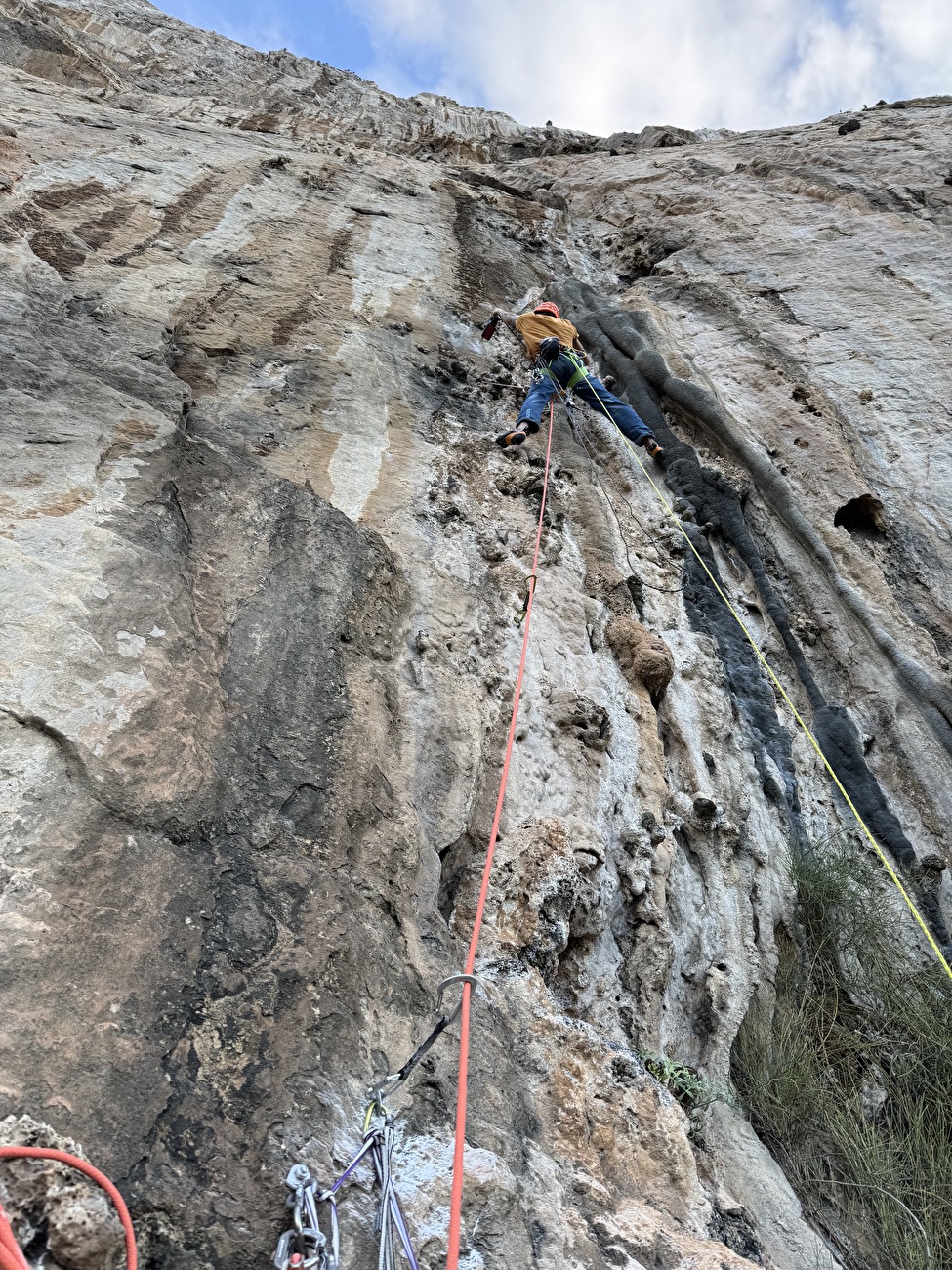 Novembre 2024 – Entre l’escalade sportive et le boulon des nouveaux secteurs près de Palerme – nous sommes retournés à Monte Gallo pour un projet que nous avions regardé en 2022, lorsque nous avons établi Courants galvaniques.