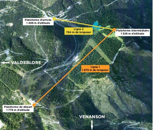 La tyrolienne se situera sur le périmètre du domaine skiable de la station de la Colmiane. Elle comportera deux lignes permettant de rejoindre le centre de la station (à proximité du col SaintMartin), depuis l’arrivée du télésiège du Pic.