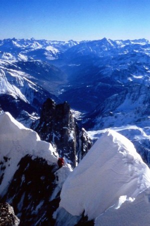 La première hivernale de l’Innominata au mt-Blanc accomplie en janvier 81 avec mes amis Yannick Seigneur, Hervé Boisier et Nicole Poutrel fait incontestablement partie de mes plus beaux souvenirs de montagne. Hivernale traditionnelle : gros sacs, deux bivouacs, conditions difficiles, grand froid, une belle arête… Yannick l’avait tenté plusieurs fois auparavant et jamais réussi pour diverses raisons. Il m’avait dit : « si tu viens, j’emmènerai une de mes clientes avec nous, elle rêve de faire cette course ! » Finalement, j’ai moi aussi trouvé un ami – qui d’ailleurs n’avait jamais gravit le Mont-Blanc – et nous sommes parti à deux cordées.