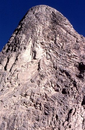 Je me souviens aussi d’une expédition au Hoggar en avril 82 ou nous nous étions fait déposer en véhicule par un Touareg au pied de l’Illamane avec vivre et matériel pour trois semaines. Le Touareg une fois parti, nous nous étions retrouvés seuls avec notre montagne à gravir. Nous étions quatre : trois grimpeurs et un journaliste avec pour but de tenter la première ascension directe de la face sud de l’Illamane qui, d’après ce que m’avait dit Frison-Roche, restait le gros problème du Hoggar. Au bout d’une semaine, du fait de la grosse chaleur, une grande partie de notre nourriture était avariée et notre réserve d’eau, placée dans des cubis réservé habituellement au vin, ressemblait à celle d’un aquarium. Lorsque le Touareg est venu nous rechercher trois semaines plus tard, cela faisait trois jours que nous n’avions rien mangé et presque rien bu. Pas un seul véhicule n’est passé au pied de l’illamane pendant cette période. Quant à la face sud, nous avons échoués à une centaine de mètres du sommet, au pied du fameux « chou fleur. » A l’époque, pas de perfo et très peu de spits, d’abord pour respecter les problèmes d’éthique – dont tout le monde, mis à part les anglais semble se moquer aujourd’hui – ensuite parce que nous n’en avions apportés qu’une poignée dans nos bagages. Nous avons cependant réussi une belle voie dans la face Est de l’Illamane, celle là même tentée par Frison Roche en 1935, où un vol mémorable avait manqué lui couter la vie. Depuis, en reprenant notre voie, la face sud a été gravie, mais avec une large traversée vers la droite qui évite le fameux « chou fleur » surplombant, véritable défi posé par cette face.