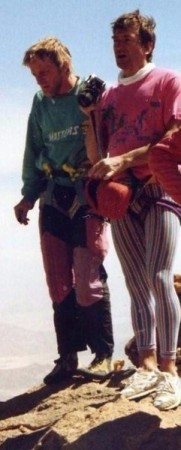 Côté témoignage : Le premier qui m’a proposé d’en parler fût Jean-Paul Zuanon alors directeur de la revue du CAF La Montagne & Alpinisme. Titre de l’interview : Un homme debout (j’ai gardé ce titre pour un livre témoignage que j’ai écris par la suite) ; ensuite ce fût un reportage sur France3, puis un long entretien dans Vertical grâce à Jeanmi Asselin et Guillaume Vallot. Témoigner dans des interviews ou des films c’était bien, mais il fallait aussi que la machine suive le rythme sur le terrain des bonnes paroles distillées. C’est dans cet état d’esprit – et entre deux chimio – que je suis parti grimper en Jordanie et au Niger avec Yannick, et que j’ai gravi le linceul aux Grandes Jorasses en 1997. Il fallait que je me prouve à moi-même que c’était possible pour pouvoir en parler aux autres après. Aujourd’hui, beaucoup de mes amis sont morts du cancer – Rébuffat, Seigneur, Desmaison, Bérardini, Domenech, Affanassief… Certains m’ont plains lorsque j’étais très malade. Ils sont pourtant partis avant moi. Est-ce à dire que j’ai été plus fort qu’eux dans la maladie ? Surement pas ! J’ai eu plus de chance voilà tout. Aujourd’hui pour moi, rien n’est terminé. D’abord je suis médicalisé à vie avec la prise de médicaments anti-rejets, ensuite, après avoir détruit mon foie, le cancer à coloniser mon système ganglionnaire digestif, donc rien n’est fini et ça fait 25 ans que je me bats !