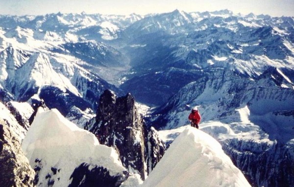 Dernièrement, ma mère m’a montré une vieille photo où je suis à Chamonix près d’un mur de neige. Cette photo a été réalisée au cours d’un voyage organisé avec mes parents en 62 ou 63. J’avais 6 ou 7 ans. Plus sérieusement ma découverte de la montagne et de l’alpinisme remonte à l’année 70. Cette année là, devant mes piètres résultats scolaires, mon père ouvrier chez Peugeot, décida de m’inscrire à la colo de vacances de l’entreprise, non à la mer comme les autres années, mais à la montagne, à Chamonix. Il pensait que j’allais en baver et qu’ils allaient me faire porter des sacs de caillasses en pleine chaleur… Rien de tel évidemment et la prétendue punition s’est vite transformée en passion, puis en raison de vivre…