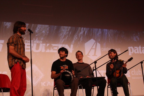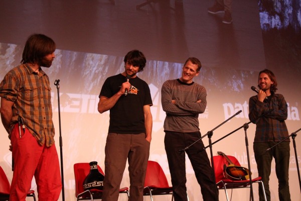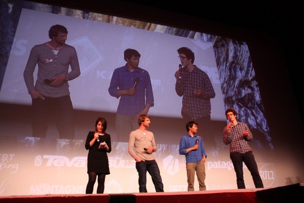 Le point d’orgue de cette soirée fut sans contest le film d’Evrard Wendenbaum sur l’expé « Chinajam » (1h 15) en compagnie des belges Hanssens, Villanueva et Favresse. Tourné avec humour, on sent que l’équipe dégage une certaine expérience et maturité, rodée aux expéditions et aux big walls. Cela parait presque facile à les voir évoluer ! Le réalisateur français Evrard Wendenbaum fait figure d’intrus dans cette bande de gais lurons puisqu’il les accompagne pour la première fois. On suit l’équipe au gré des conditions météo difficiles avec le choix de la face, puis tous les détails de l’ascension jusqu’au sommet de Kyzyl Asker (5800 mètres) qui n’aura pas été qu’une partie de plaisir. 1200 mètres de big wall avec des conditions enneigées à braver le froid, attendre les conditions propices à la grimpe en musique dans les portaledges, 3 campements dans la face,…. Stéphane Hanssens finira l’expé avec des gelures au pied qui auraient pu lui valoir à quelques détails près l’amputation. Mais le granite sculpté superbe de la face semblait en valoir la peine, avec des longueurs exceptionnelles et des difficultés pouvant avoisiner le 7c/8a, pour un big wall de caractère dans une zone reculée et des images vraiment dépaysantes qui n’ont pas été faciles à capturer. La soirée se finira avec un film bonus des belges sur le Groenland. La bande a amené leur capitaine de bateau, Bob Shepton, 79 ans, faire une course avec eux. Un hommage rendu à ce bonhomme sans qui leur précédente aventure « Vertical sailing » aurait été impossible, pour un moment de partage et de complicité hors normes.