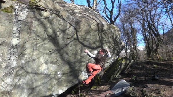 Au rayon ouvertures locales, Manu Marquès ouvre une combinaison au Drei Zinnen sur le bloc de ‘Matière Grise’ avec ‘La diagonale des oufs‘ 8B : démarrage dans multipass et sortie dans ‘Brainstorming’ 8A, variante de droite de ‘Matière grise’ (8A, ouverte par Thomas Collignon). Christophe Laumone ouvre quant à lui ‘Double sens‘ 8B, une traversée aller-retour sur le bloc d’Alien au rocher Cailleau.