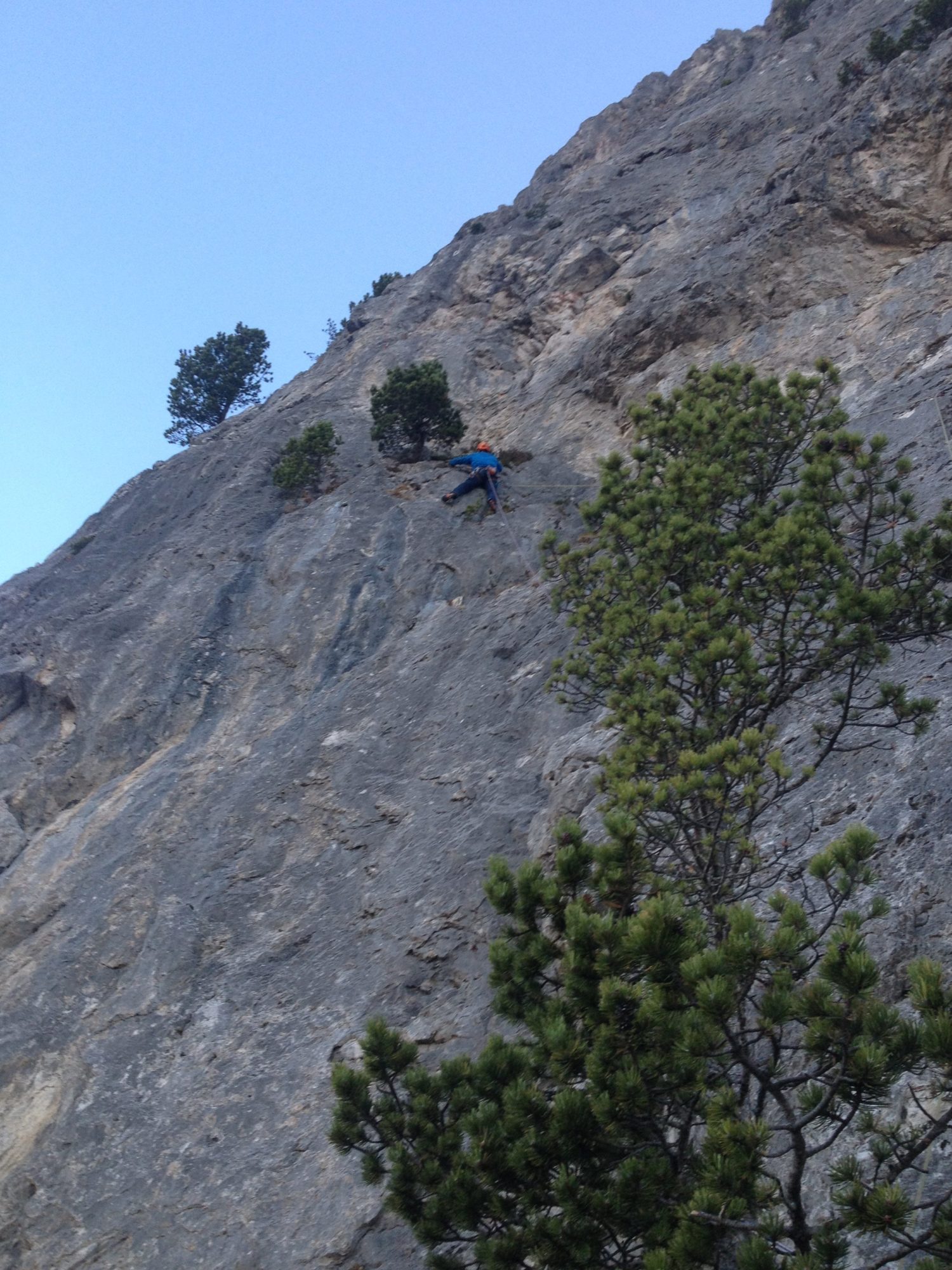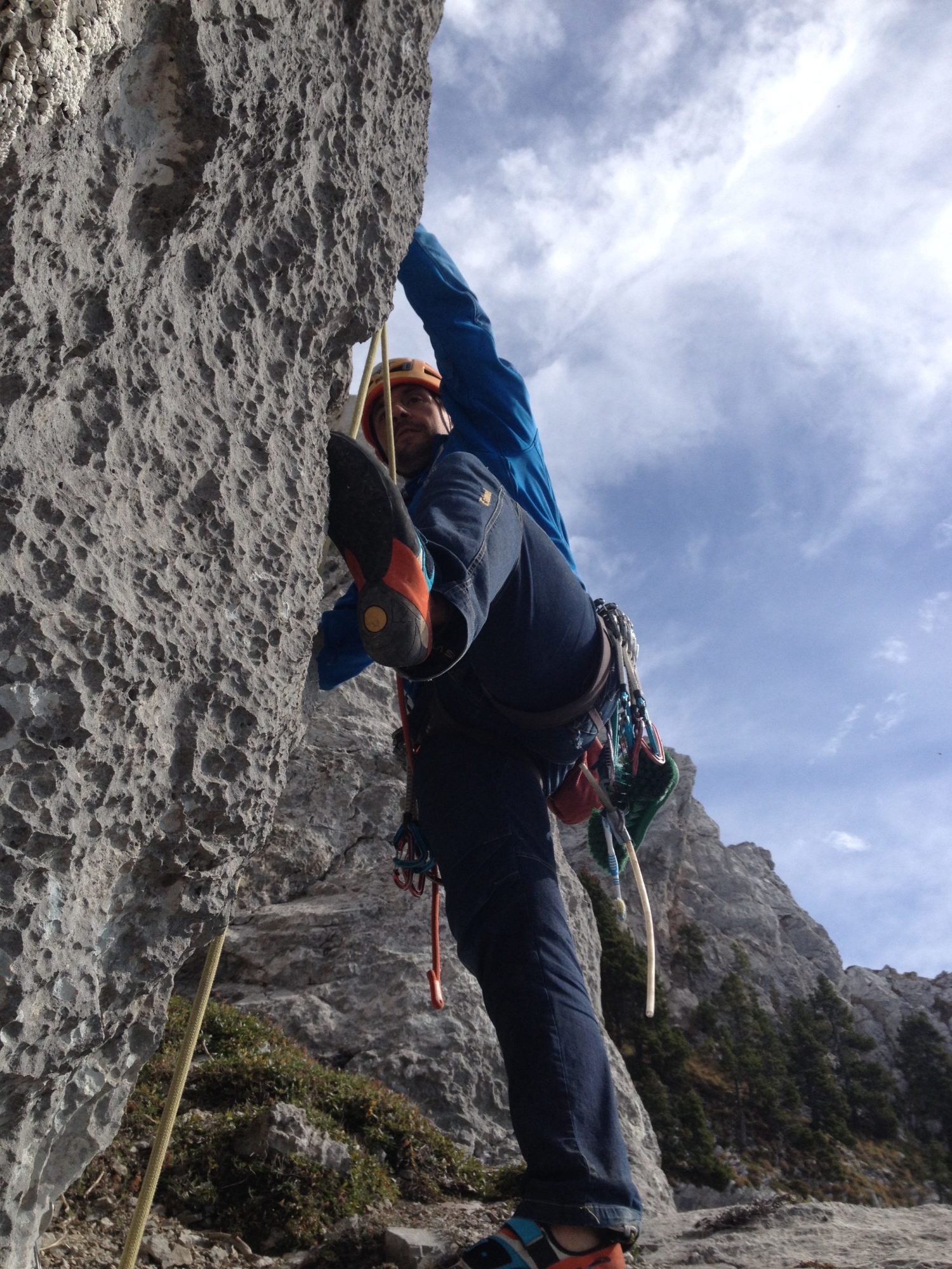 Grimpe classique en calcaire, avec des trous, des passages en dalle et quelque gouttes ou cannelures.