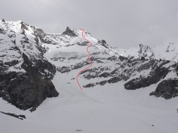 C’est cette fois-ci en compagnie de Eric Saint-Bonnet que le 14 mai dernier il a ouvert le long du ‘Glacier du Prêtre’, pour rejoindre un sommet non nommé et non côté sur la carte (3550m), entre le Mont Pourri et le Dôme de la Sache.