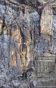 6 longueurs 7a / 6c obligatoire Equipement du bas : Jean-Marie Porcellana / Didier Ançay juillet 2015.
