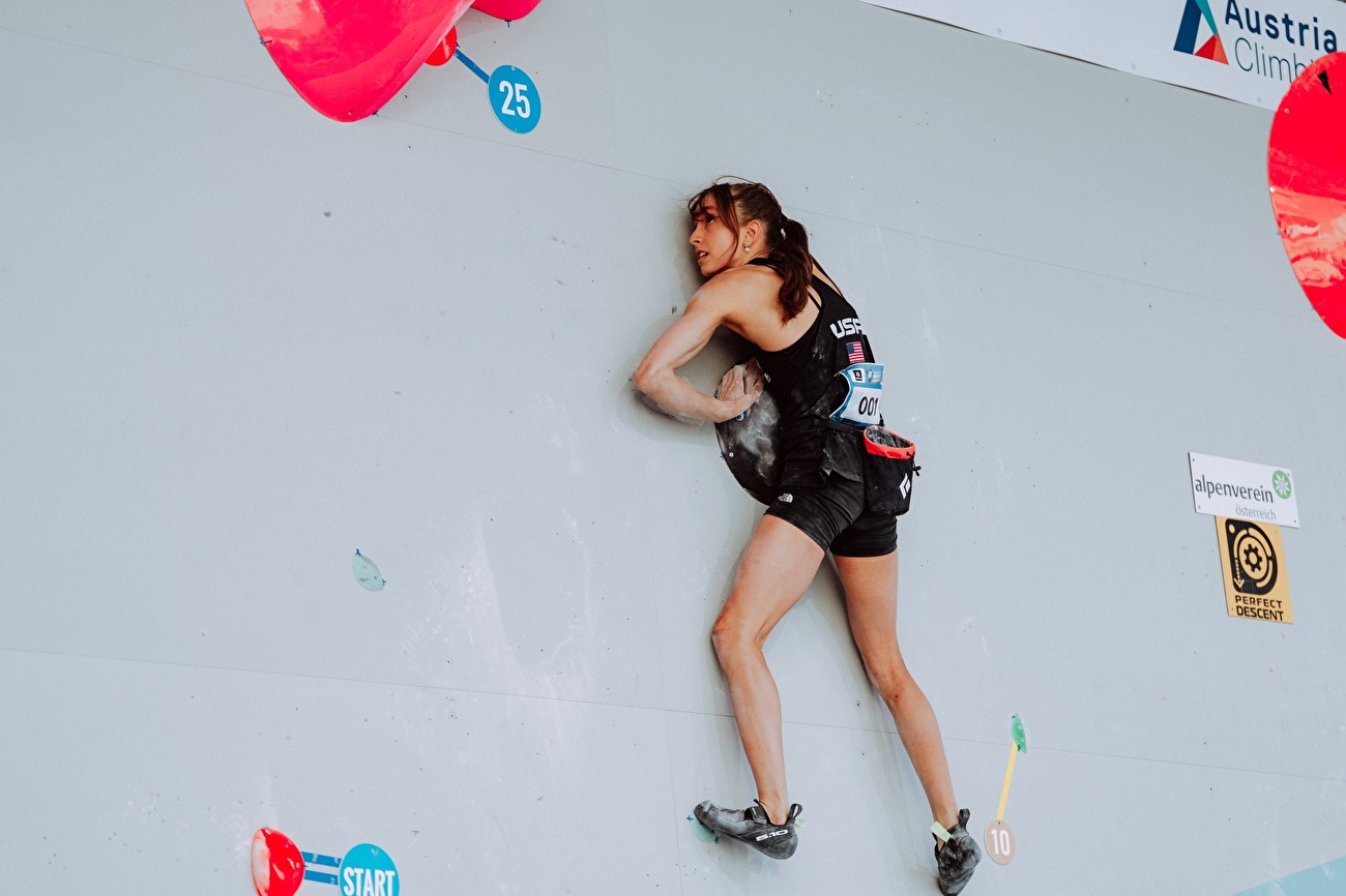 Dans l’événement féminin, Janja Garnbret de Slovénie a fait un retour étonnant en compétition en remportant l’or après avoir dominé les quatre rochers en finale et rappelant au monde pourquoi elle est deux fois championne olympique. Apparaissant dans sa première Coupe du monde depuis Koper 2024, Garnbret était la seule athlète à dépasser tous les problèmes de la finale, et elle a même flashé W3 et W4 à terminer avec le score impressionnant de 99,3 points. Alors qu’elle a obtenu le sommet du dernier problème, la foule a éclaté pour célébrer, rejointe par ses collègues finalistes qui ont spontanément applaudi la performance. « C’est incroyable. Je ne savais pas comment je me sentirais en revenir, mais cette incroyable foule Innsbruck m’a accueilli à nouveau. » Dit Garnbret. « Je me suis vraiment apprécié sur le mur, j’ai eu un peu de début de qualification, puis à 100% mieux en demi-finale, et maintenant je me sentais comme mon ancien moi en finale. J’ai vraiment apprécié d’être de retour. »