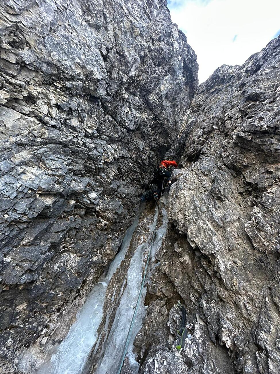 Bien que Messini connaisse bien la région, c’était la première fois que Gietl montait au sommet et il a commenté “Superbe rocher, superbe environnement, excellente glace. Quoi de mieux que de passer du temps avec de bons amis ?”