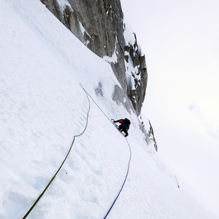 Les montagnes du Kichatna au sud-est de l’Alaska, malgré leur éloignement ont connues une belle réalisation. Mike Turner et Tim Blakemore ont enduré un mauvais temps fait de vent, neige et bourrasque pour ouvrir No Country for old man. La voie est très raide et soutenue.