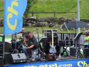 Il est temps de reprendre des forces, on se pose au bord du lac de Vonnes à Châtel, bercé ou plutôt secoué par un groupe de rock qui met l’ambiance, on se régale !