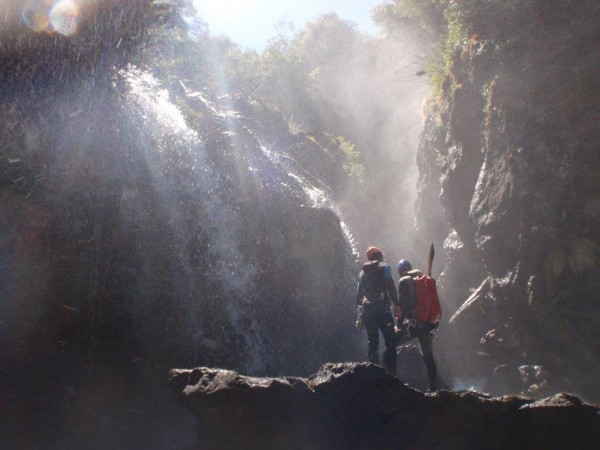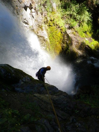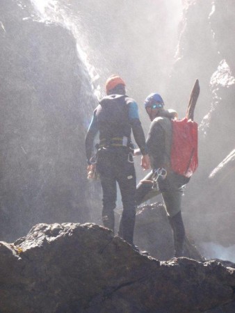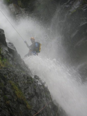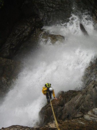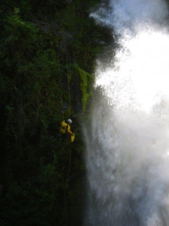 Greg Marzio dans les gros débits de la cascade finale de Jimena