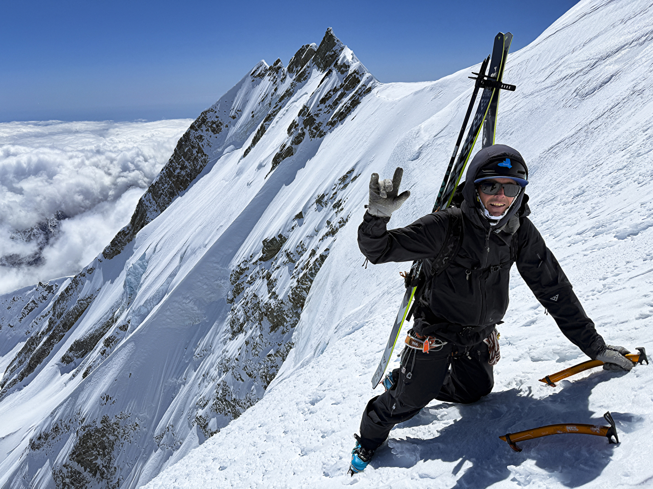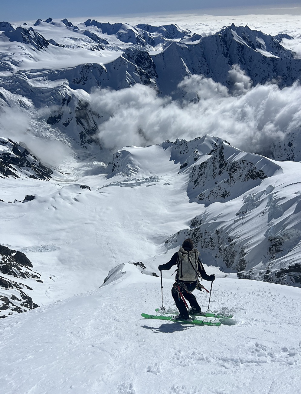 Ce fut un voyage génial en Nouvelle-Zélande, avec de nombreuses équipes psychées poussant les limites. J’ai eu la chance d’avoir de grandes conditions et j’ai également skié la deuxième descente du visage sud-est de Silberhorn avec Beau, la troisième descente de Syme Ridge sur Tasman avec Gee Pierrel et Christina Lusti, et j’ai fait une tentative ratée sur la route Jones sur le mont Cook avec les deux susmentionnés skieurs.