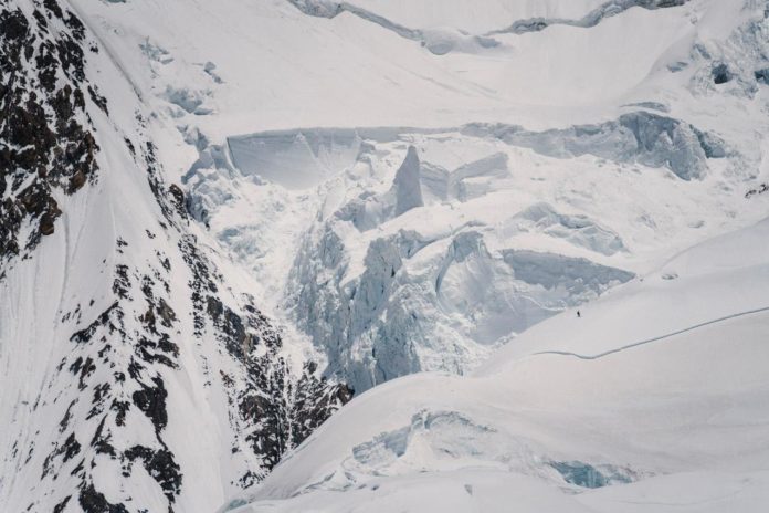 Il est là, tout petit dans la descente face à un immense glacier. La photo est impressionnante, et l’exploit tout autant.