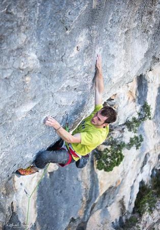 ‘Une semaine avant j’ai grimpé ‘Progression’ 8c, une voie de résistance courte (une vingtaine de mouvements). Elle était un peu devenu ma bête noire, car je me suis écroulé plusieurs fois à 2 ou 3 mouvements du bac salvateur. Je l’avais un peu laissé de côté ces dernières semaines, et m’étais mis le chantier dans ‘Nadesjda’. (ndlr : une voie dont Sean McColl a réalisé le première ascension, 8c, 8c+ ou 9a selon si on la réalise droit dans les points ou pas) Puis un jour, en 2ème voie de chauffe, je l’ai enchainé. Mais je pense que mes potes d’Alsace n’aimeraient pas trop le style de ‘Progression’, pas assez violent , trop homogène ! Je plaisante ! Maintenant il faut mettre les bouchées doubles avant les grandes chaleurs pour venir à bout de ‘Nadesjda’.