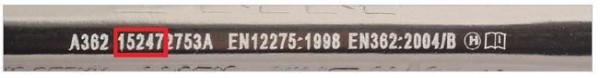 Les numéros de suivies se trouvent sur la tranche des mousquetons (côté opposé du doigt) :