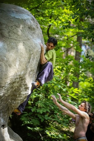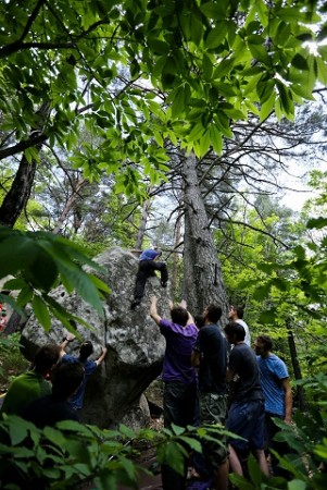 Le dimanche, c’est également sous le soleil que s’est déroulé la journée. Les plus énervés sont retournés tater du grès sur les secteurs traditionnels de la piste d’Argenton, certains en ont profité pour faire quelques couennes ou s’initier à la fissure, tandis qu’une grande partie est restée en tranquille au bar.