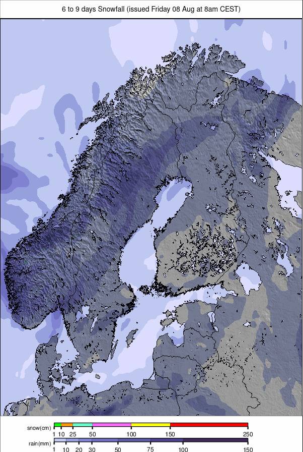 Scandinavie Snow Prévisions pour les 6 à 9 prochains jours.
