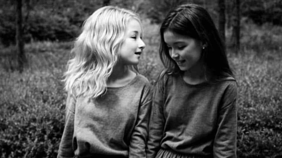 À première vue, la photo semble simple : deux petites filles posent devant une végétation. L’une est blonde et semble tournée légèrement de profil, tandis que l’autre, aux cheveux bruns, est vue de trois quarts. Rien de particulier n’attire l’attention… du moins au premier regard.