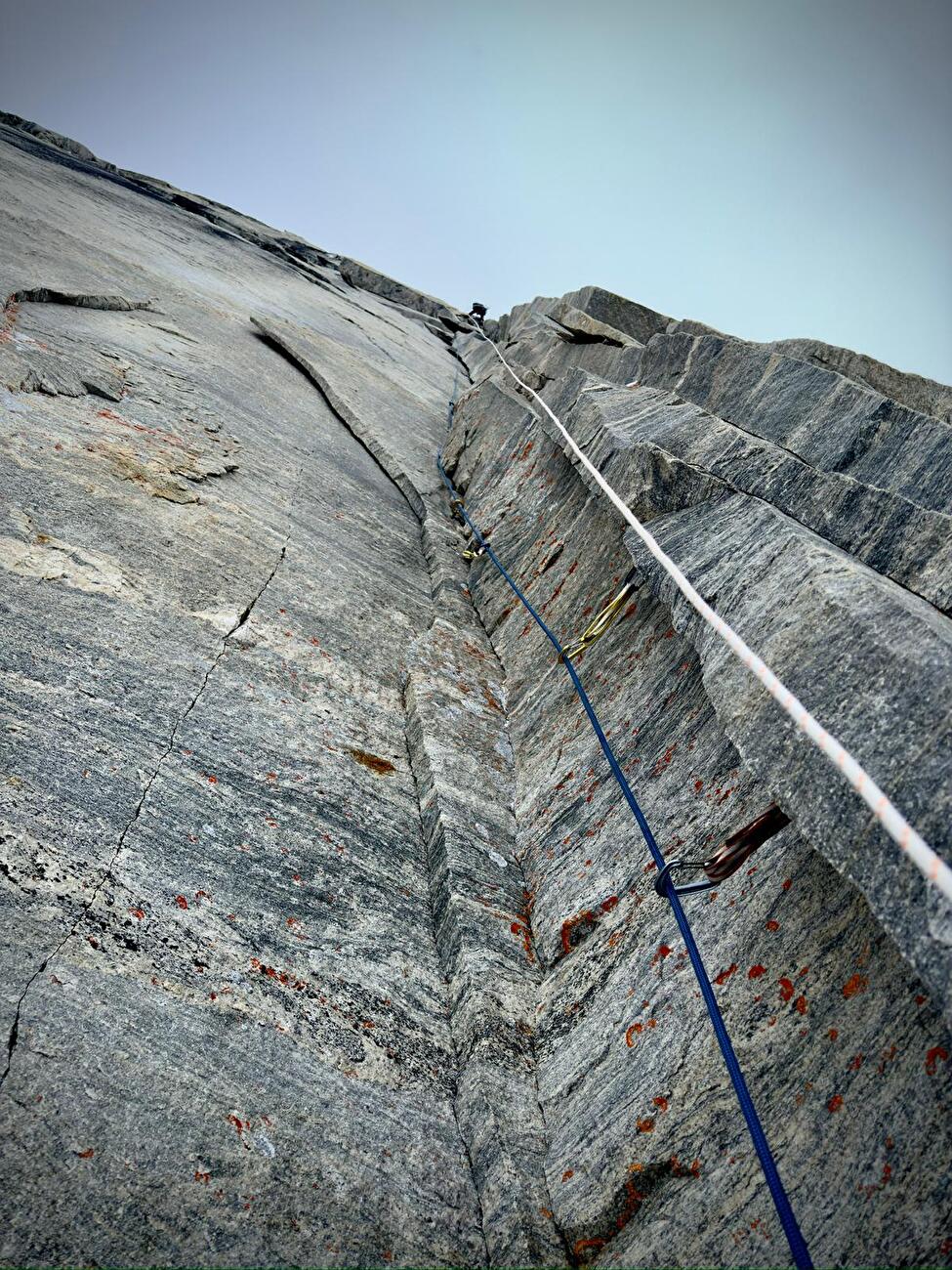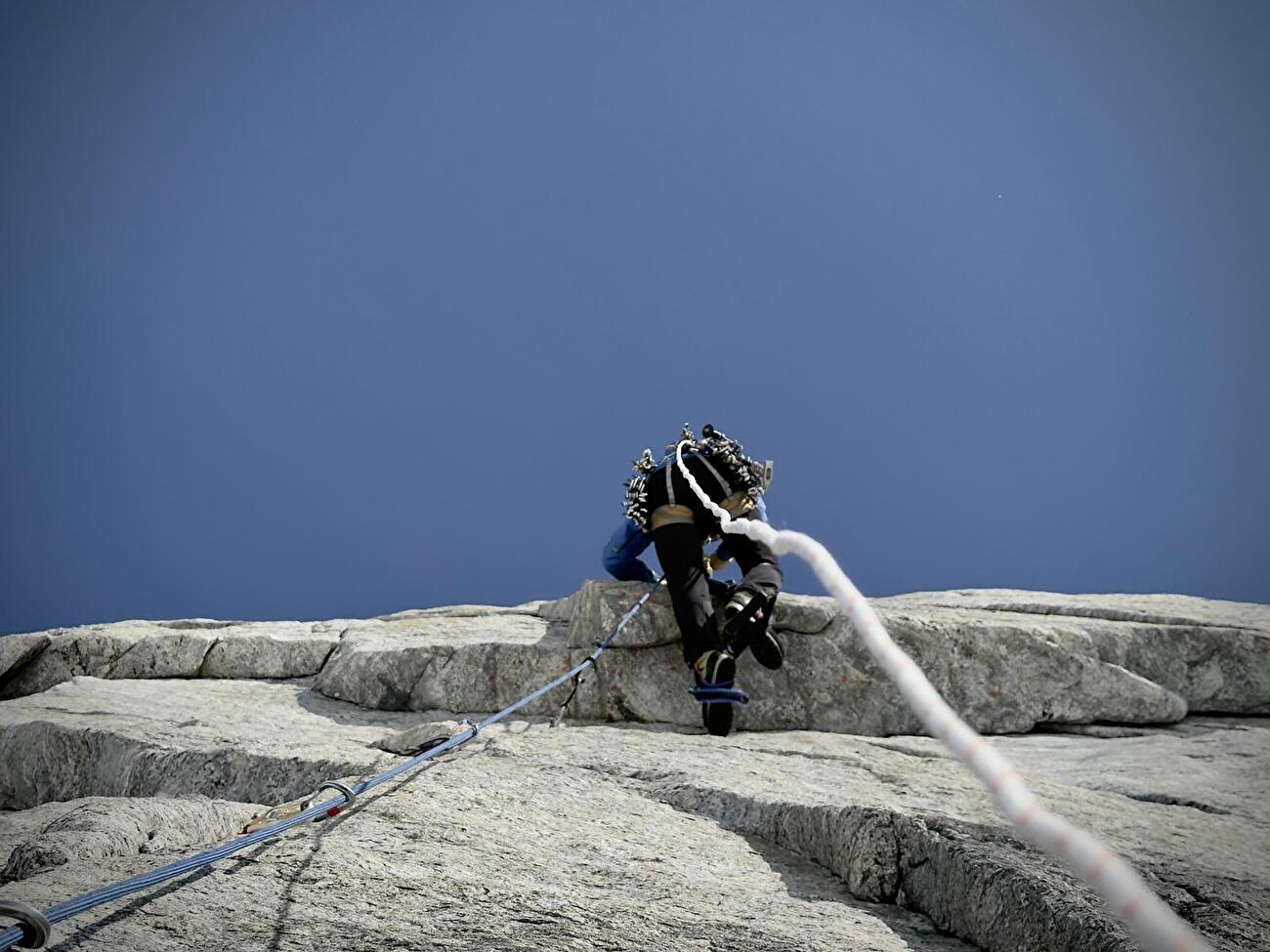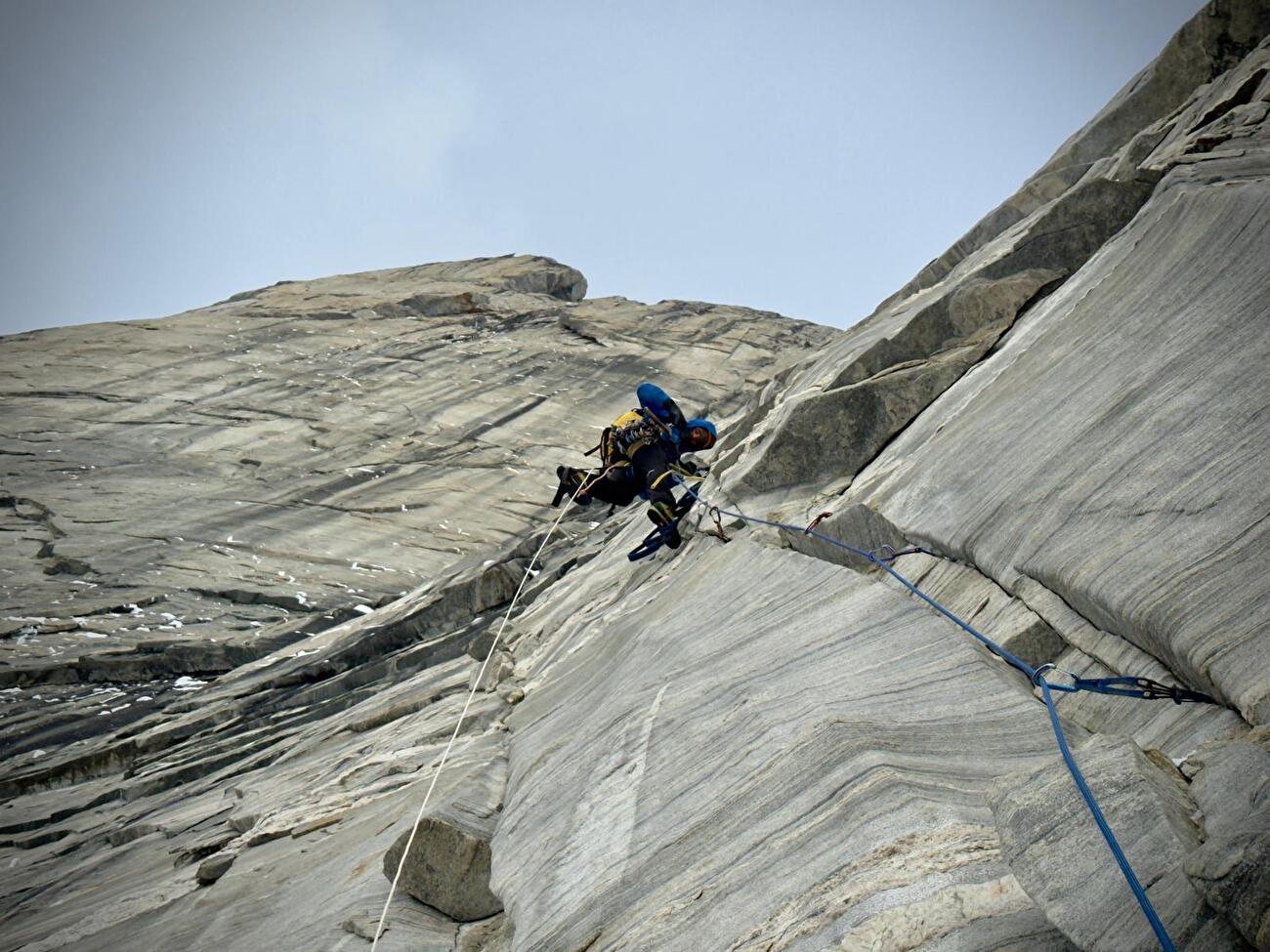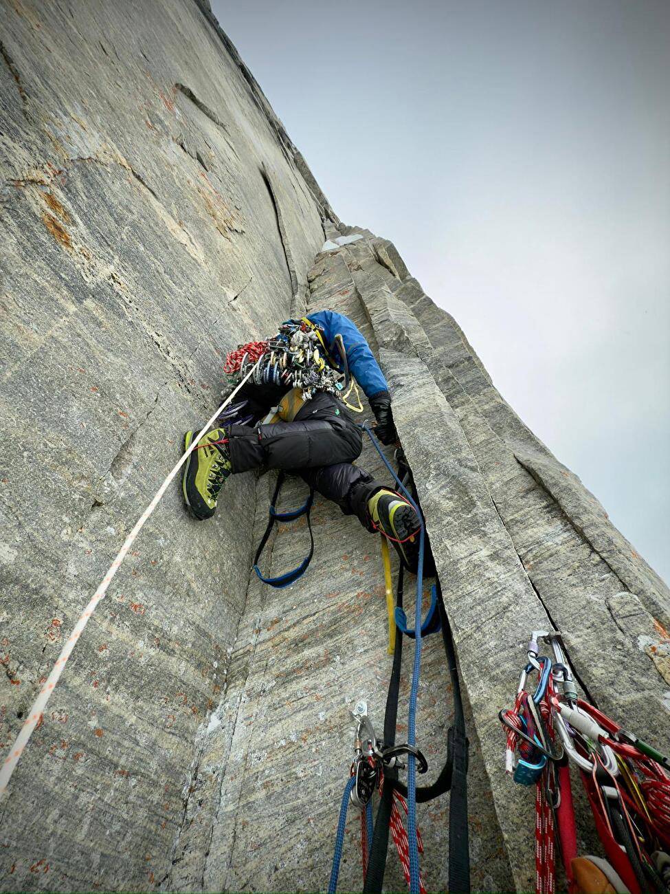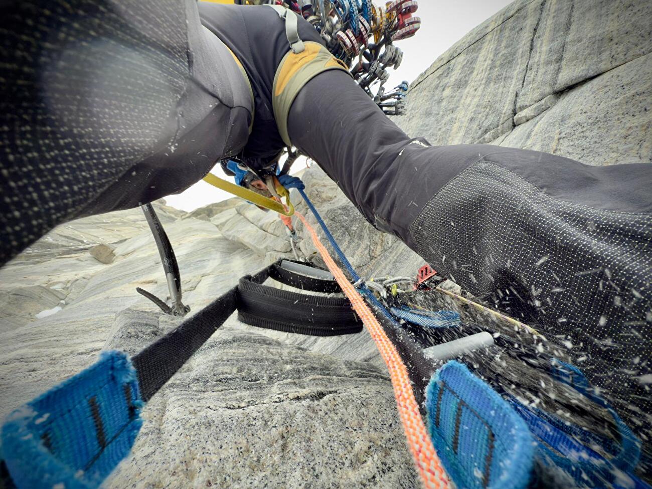La paire a utilisé un traîneau de motoneige et de komatik traditionnel pour accéder au mur précédemment non cliqué. Ils ont commencé leur ascension le 1er mai et au cours des 23 prochains jours, non seulement les difficultés techniques et le granit lâche, mais aussi les conditions de l’Arctique extrême. Ils ont signalé des sommets quotidiens autour de -7 ° C et en moyenne autour de -15 ° C, ainsi qu’une tempête de vent soudaine et violente qui les a laissés s’accrocher à leur portaledge à 500 m au-dessus du sol avec une seule corde fonctionnelle. Après avoir lutté contre les chutes de neige à mi-chemin et la baisse des équipements – y compris trois cordes de noyau – les grimpeurs se sont soumis à des températures qui se réchauffaient soudainement, déclenchant une chute de roche dangereuse.