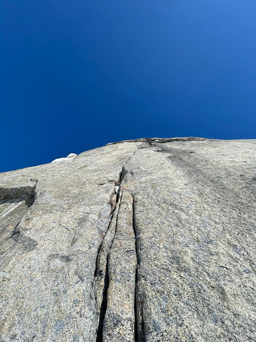 La paire a grimpé de style capsule et a établi 4 camps de portaledge pour leurs 20 nuits sur le mur. Environ 8 boulons ont été placés, principalement sur les relais.