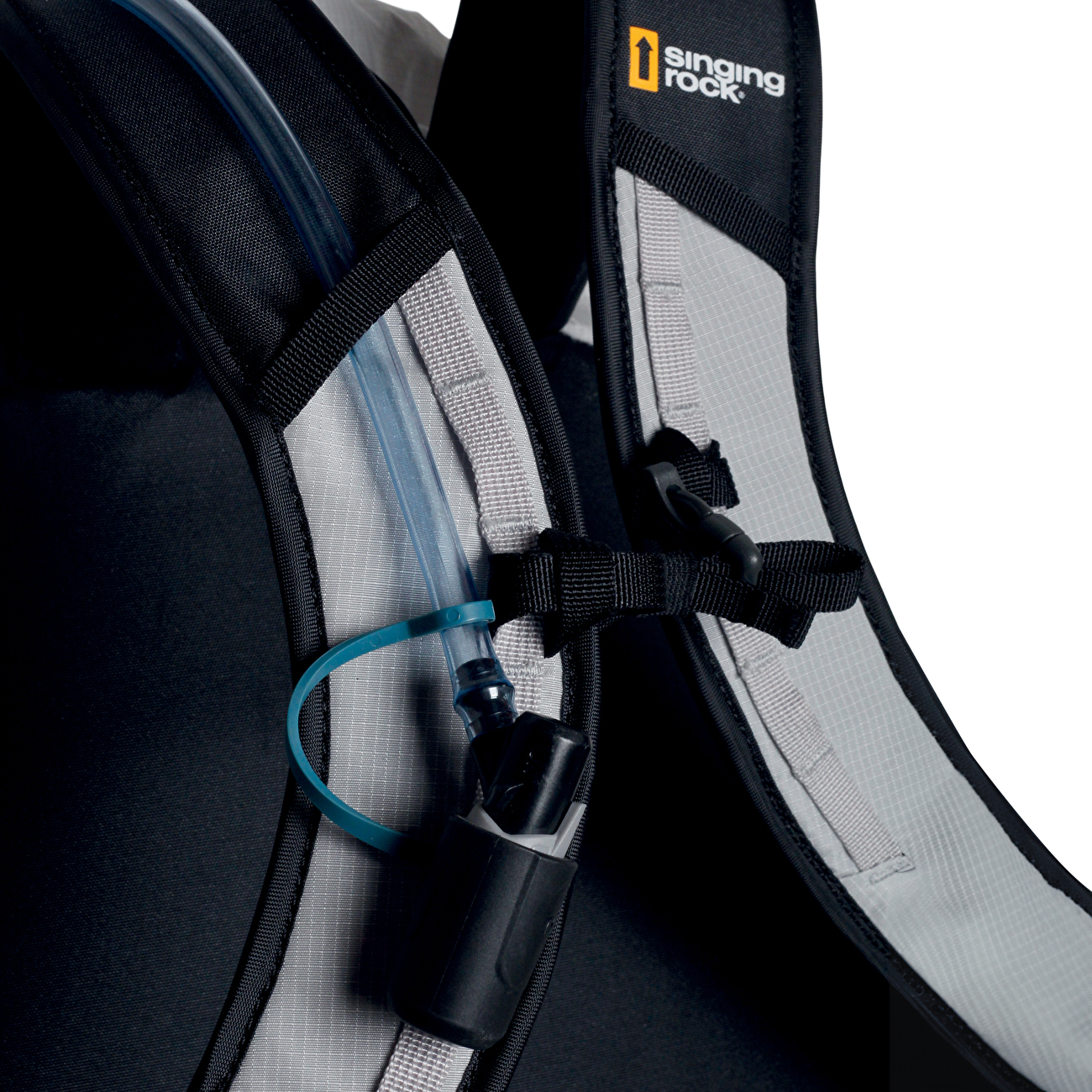- Pour votre vessie à eau, il y a une grande poche interne dans le compartiment principal et les bretelles offrent des boucles textiles pour réparer le tuyau