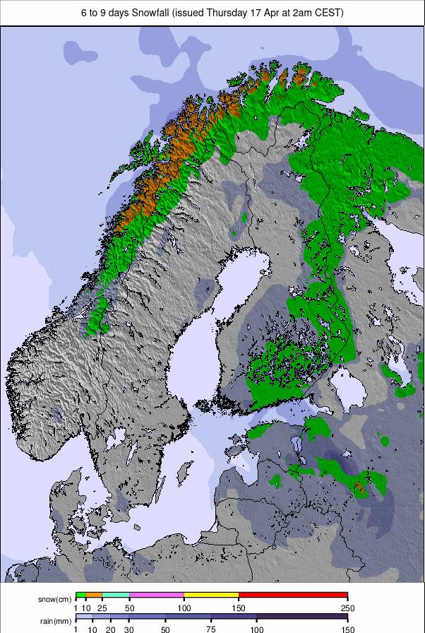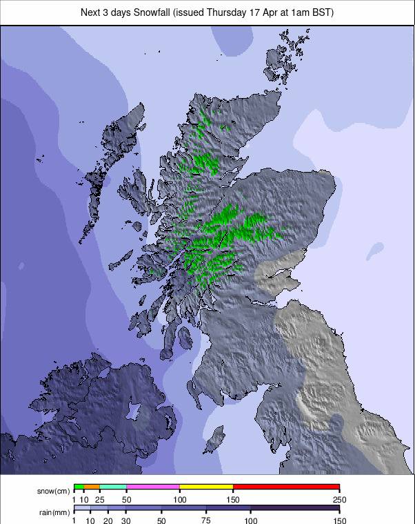 Une sensation de fin de saison, avec des températures restant au-dessus du gel à tous les niveaux – des températures dans la plage de +2 à + 9 ° C. Des averses fréquentes d’intensités variables, mais susceptibles d’être presque entièrement de la pluie.