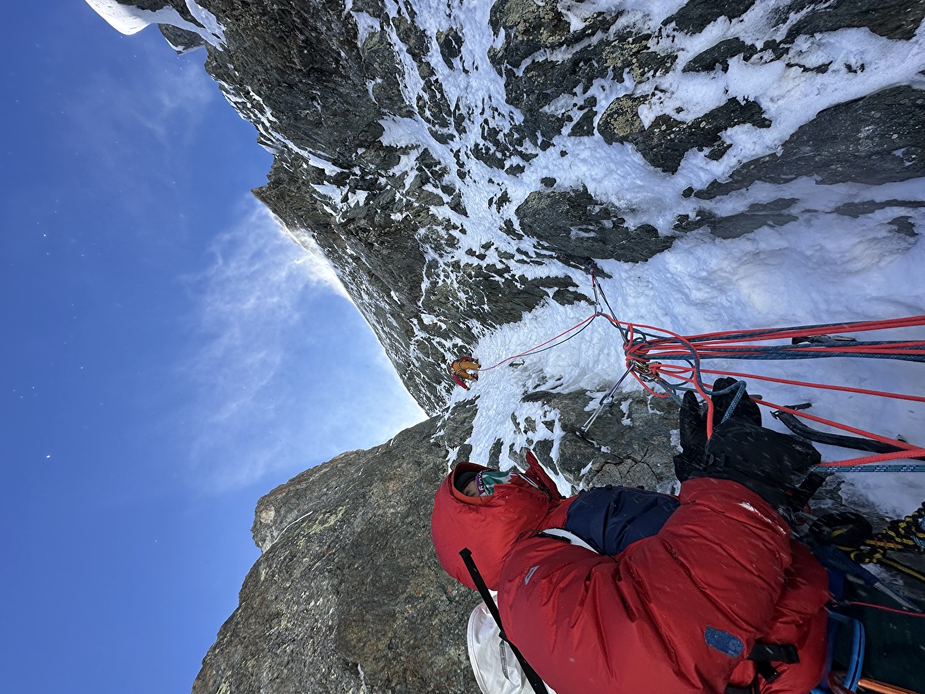 Mais l’ambiance change rapidement. Pendant le premier Abseil dans le rappel de la face sud, un rocher coupe une corde propre à 30 mètres. Les rappels seront désormais plus longs que prévu. Ensuite, tout en tirant la corde, il est coincé. Plus de temps perdu et frustration monte. Pierre remonte pour le libérer, prenant soin de ne pas l’endommager davantage.