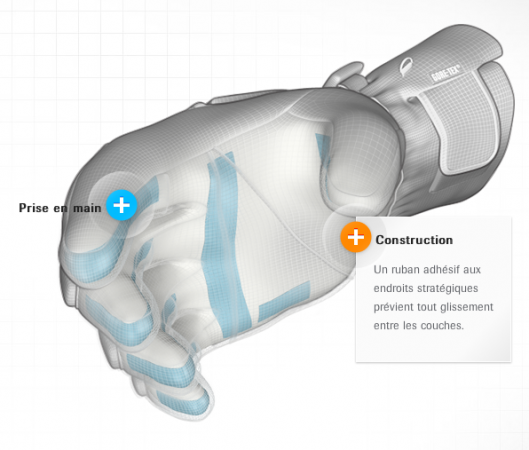 Les gants GORE-TEX comportent une doublure intérieure, l’insert GORE-TEX et un tissu extérieur. La technologie X-TRAFIT utilise une bande d’étanchement spéciale, placée à des endroits précis, notamment à l’extrémité des doigts et sur la paume, pour rendre les différentes couches solidaires entre elles. Elle empêche, par conséquent, les mouvements entre les différentes couches, ce qui garantit une grande tactilité. Le design innovant de l’insert offre une meilleure ergonomie.