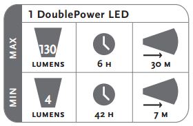 -Puissance de l’éclairage : de 4 à 130 lumens