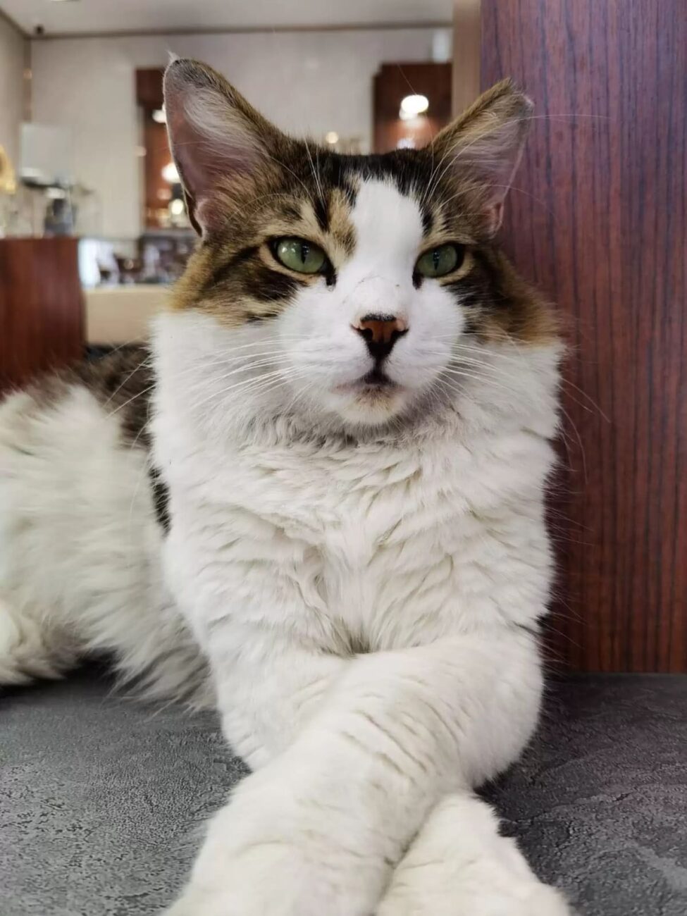 « Tarik est arrivé chez nous, tout maigre et malade », explique Ender, le porte-parole de la bijouterie. « Nous l’avons soigné, nourri et il est devenu un chat bien en chair, paresseux, mais adorable. » Tarik, qui adore être le centre d’attention, n’hésite pas à sortir chaque jour pour accueillir les curieux sur le trottoir, où il s’allonge bien souvent pour se faire câliner.