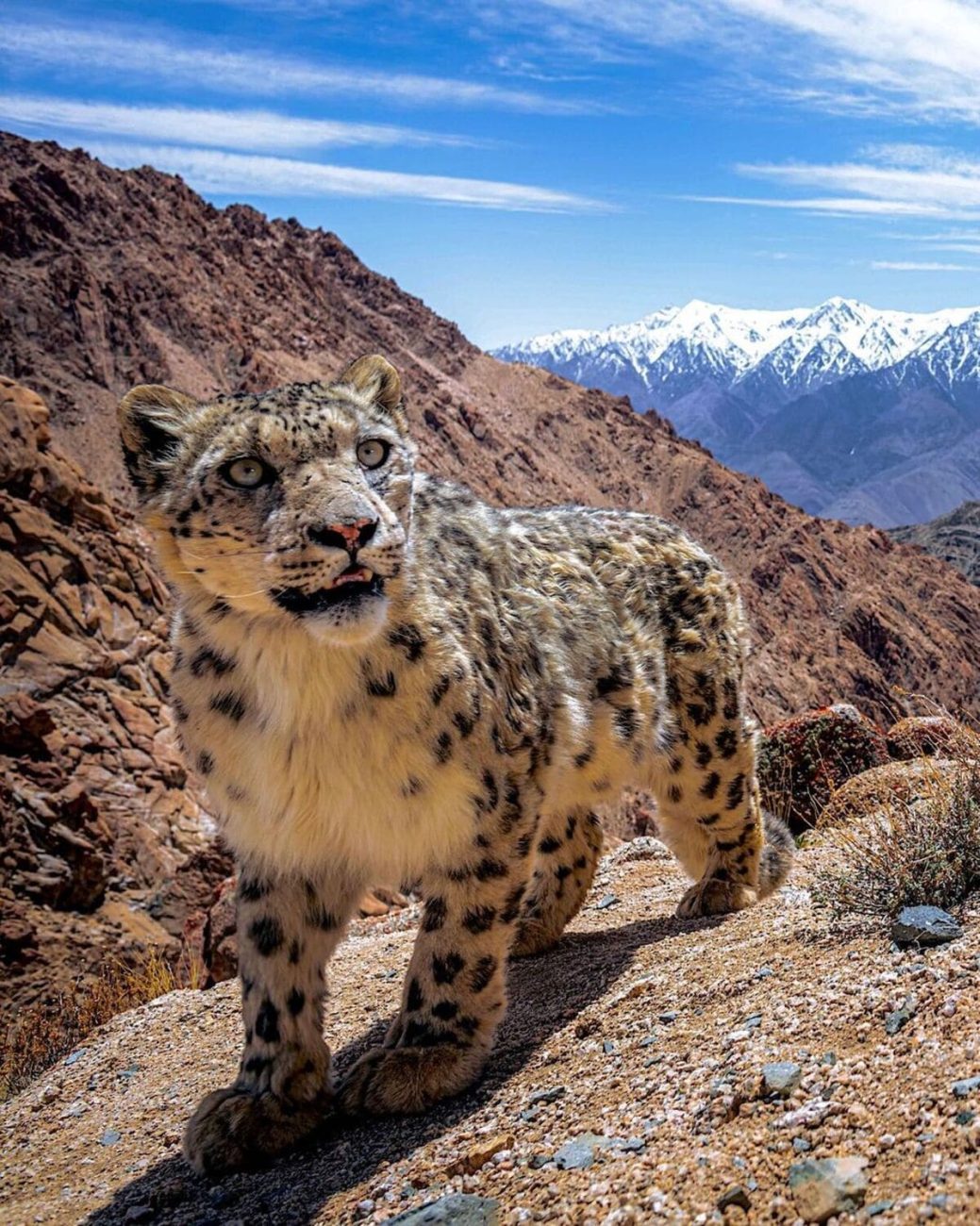 Le léopard des neiges ne se laisse pas facilement approcher. Ce félin mythique évolue dans les hauteurs du Ladakh, au nord de l’Inde, près des frontières du Pakistan et de la Chine. Il y vivrait à peine 200 à 300 individus, selon les estimations. Ce n’est donc pas un hasard si on le surnomme parfois le « fantôme des montagnes ».