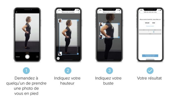 L’application mobile PackSizer 2.0 permet grâce à l’appareil photo du téléphone ou de la tablette de mesurer la longueur du buste de chaque utilisateur. Une fonctionnalité qui permet ensuite de trouver le sac qui convient le mieux à chaque taille. Et ce en trois étapes seulement. Il existe également une option pour calculer manuellement sa taille de buste.