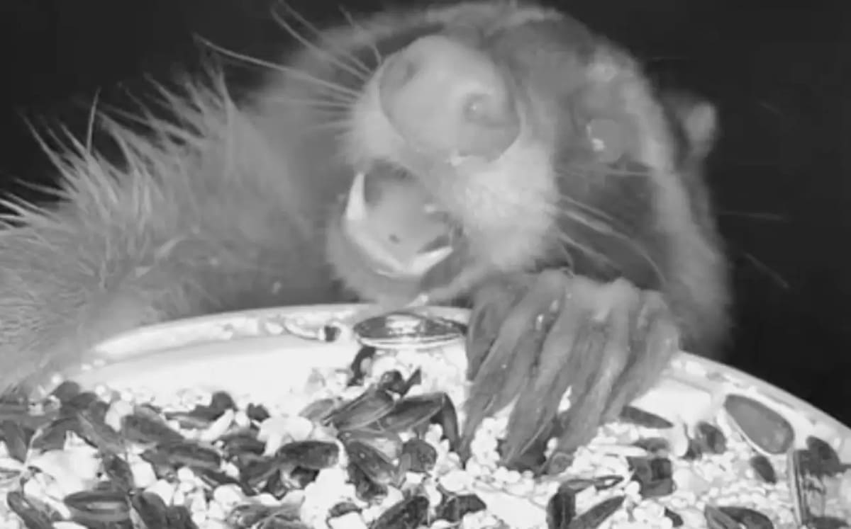 Mais dès la première nuit, ce sont des rôdeurs nocturnes bien plus poilus qui ont pris la scène d’assaut. En tête d’affiche ? Des ratons laveurs. Et pas du genre discret. L’un d’eux n’a pas hésité à faire tomber la mangeoire de l’arbre, déclenchant une véritable ruée sur les graines.