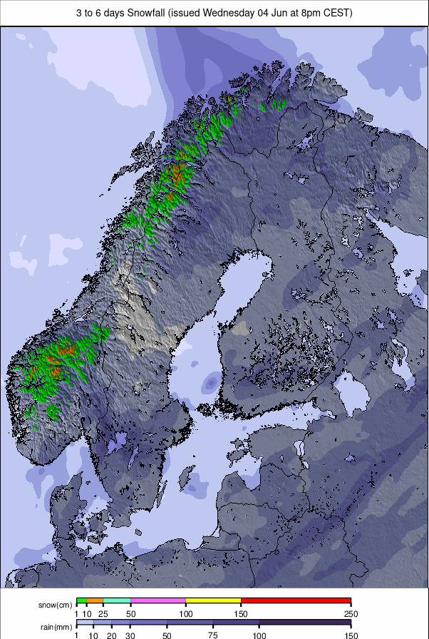 Une perspective mixte, avec du soleil et des douches dominantes. Les bas de nuit tomberont toujours bien en dessous de congélation – à -5 ° C est possible. Les sommets diurnes atteindront environ + 5 ° C à Galdhøpiggen et potentiellement + 10 ° C chez Stryn. Des précipitations légères sont attendues la plupart du temps – généralement seulement quelques centimètres ou un pouce environ – avec la pluie, le grésil ou la neige possibles en fonction de l’heure du jour ou de la nuit.