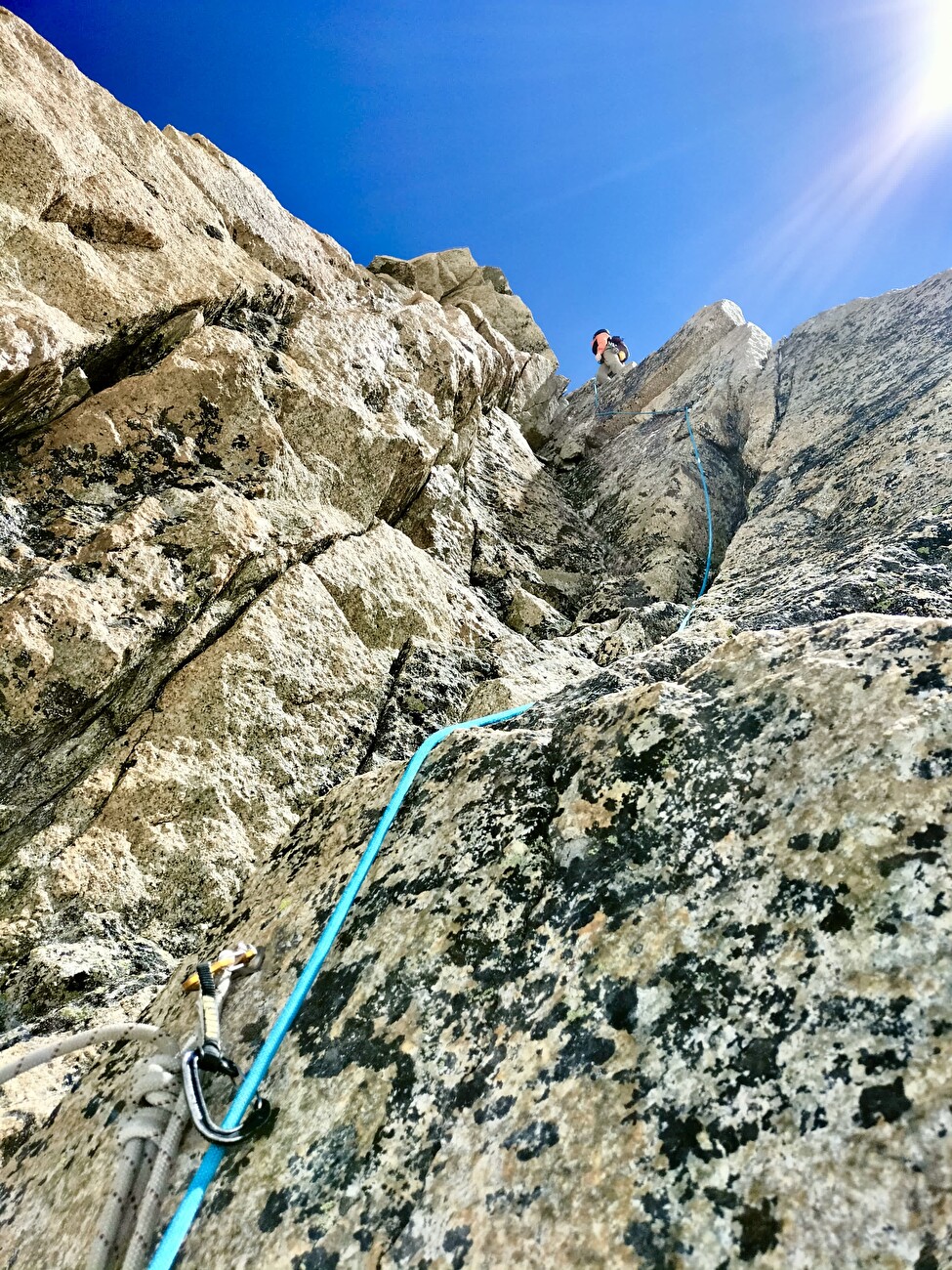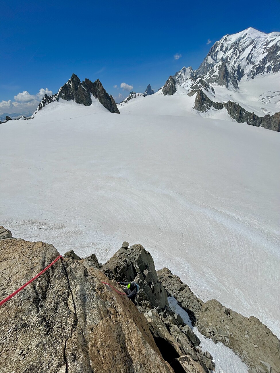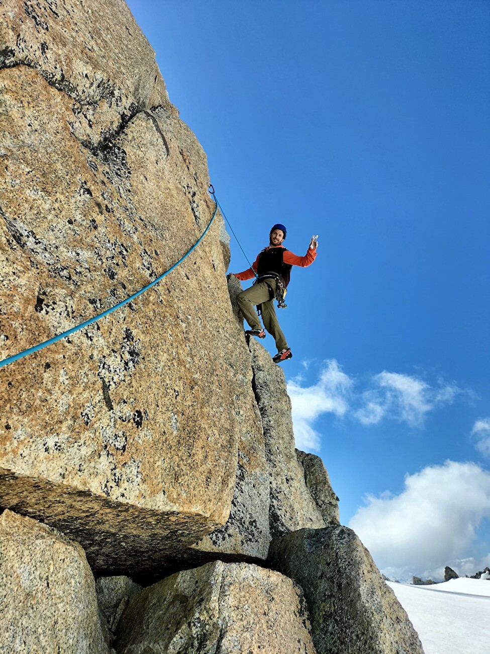 On Rognon Vaudano, the pedestal below Dent du Géant, we’re established Perte – La sœur cadette de Cric est un croquant et Il était une fois il y avait l’Occident. Monté pour la première fois avec mon collègue Gianluca Marra les 20 et le 27 juin, c’est une belle route sur le Mont Blanc Granite – Gray dans la première partie et magnifiquement rouge dans la seconde. Tout au long de ses 200 mètres, il offre de nombreuses fissures fantastiques, de beaux murs verticaux et des difficultés qui ne dépassent pas 6A +. En bref, il a tout ce qu’il nedds pour devenir un grand classique à l’avenir.