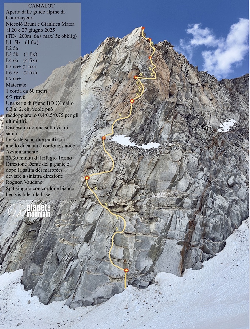 Les guides de la montagne de Courmayuer Niccolò Bruni et Gianluca Marra ont fait la première ascension de «Camalot» sur Rognon Vaudano, le piédestal situé en dessous de Dent du GÉANT dans le massif du Mont Blanc.