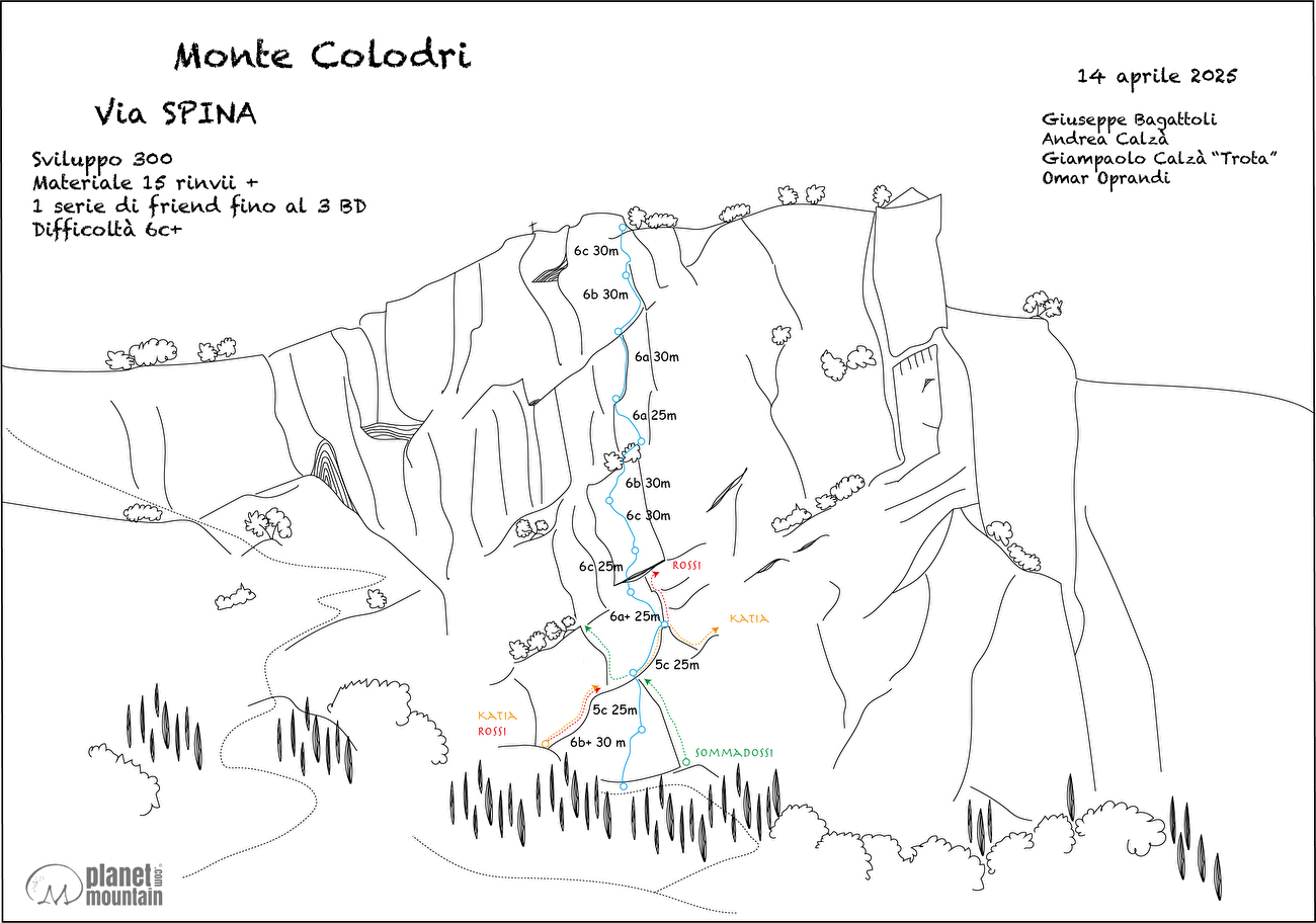 Quant au nom, nous n’avons pas eu à réfléchir beaucoup. Ayant le surnom de Mauro Giovanazzi là-bas était important pour nous – honorant sa présence et les innombrables aventures que nous avons partagées. Au cœur du mur d’El Colodri, « Spina » (Thorn) se sentait bien – une voie que nous pouvons revisiter des années plus tard pour nous souvenir de lui.