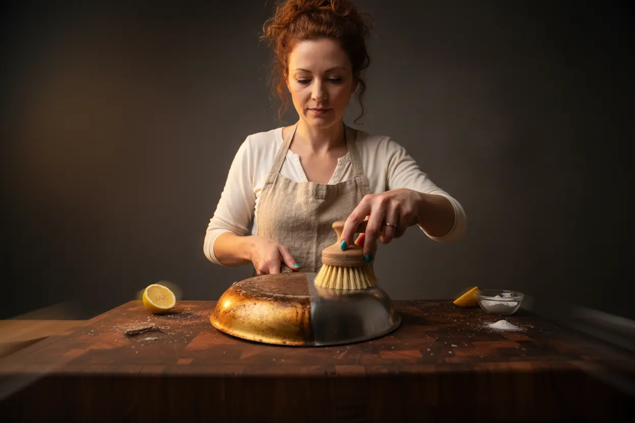 Dans la saga de votre cuisine, vos ustensiles vous suivent partout : sautés parfumés, galettes moelleuses, omelettes fièrement gonflées… Mais voilà, au fil des exploits, le revers de la poêle passe à l’oubliette. Résultat : résidus de graisse et traces de brûlé s’accumulent, formant rapidement une croûte noire aussi tenace qu’inesthétique. Un simple nettoyage quotidien ne suffit plus : l’eau perle sans décrocher la crasse, la chaleur circule moins bien et on craint déjà la prochaine préparation.