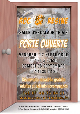 La salle Roc et Résine de Thiais (94) organise un week-end portes ouvertes. Rendez-vous le vendredi 27 (demain) à partir de 16h et le samedi 28 à partir de 14h30 sur place.