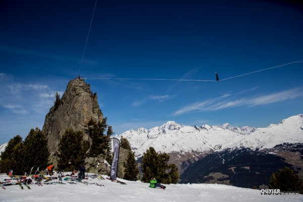Ce week-end (11-12 avril) s’est déroulé le Winter Festislack aux Arcs (savoie), 130 participants étaient présents pour profiter de 8 highlines installées au sommet du téléphérique ‘Mont-Blanc’. L’évènement organisé par l’association slackissime a été le lieu de deux nouveaux records!.